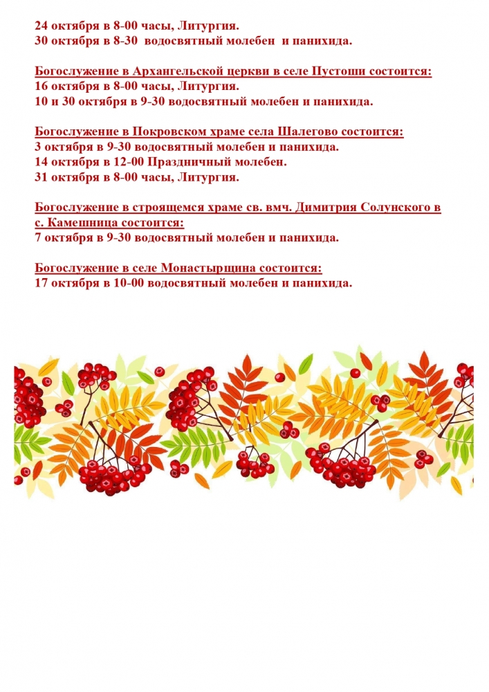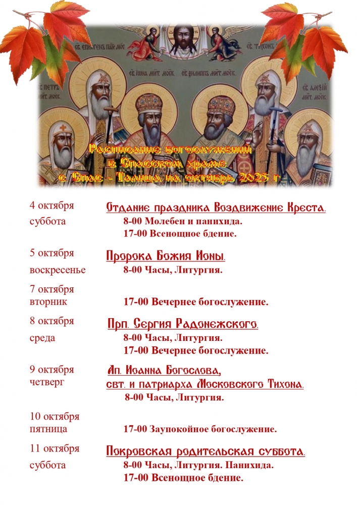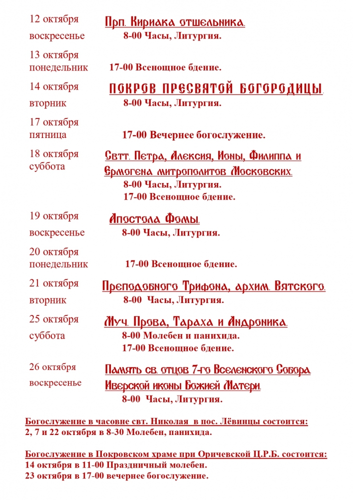 РАСПИСАНИЕ БОГОСЛУЖЕНИЙ